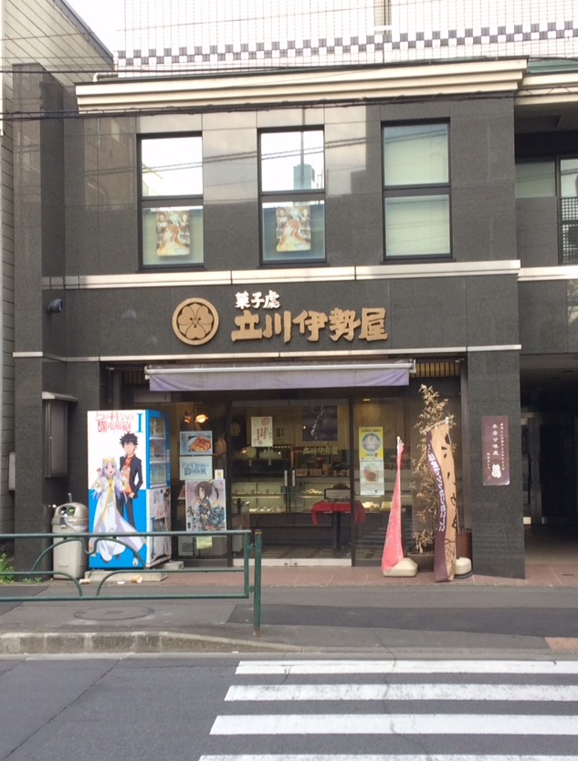 立川伊勢屋様。多種アニメ関連展示やコラボ商品もあります。