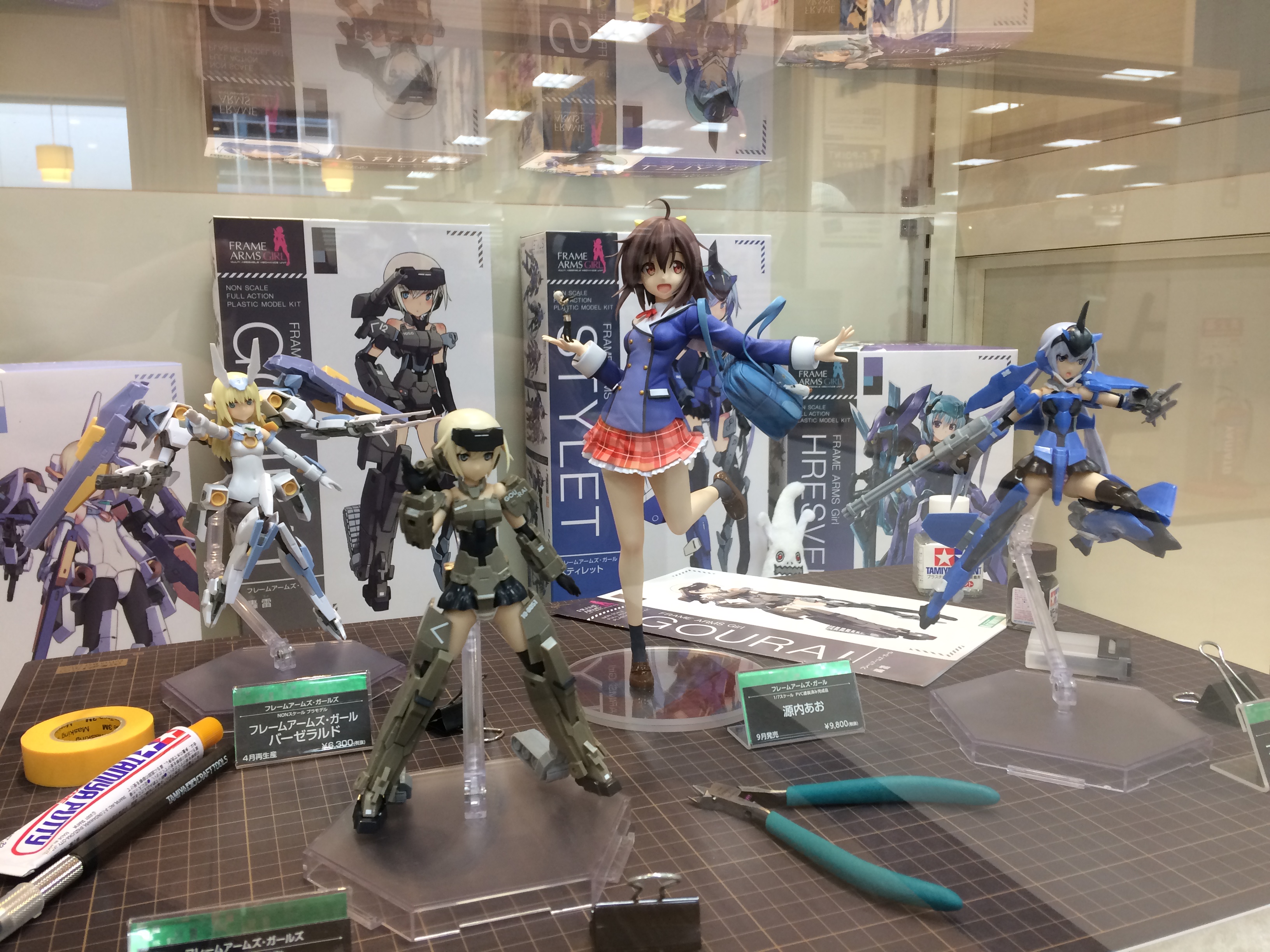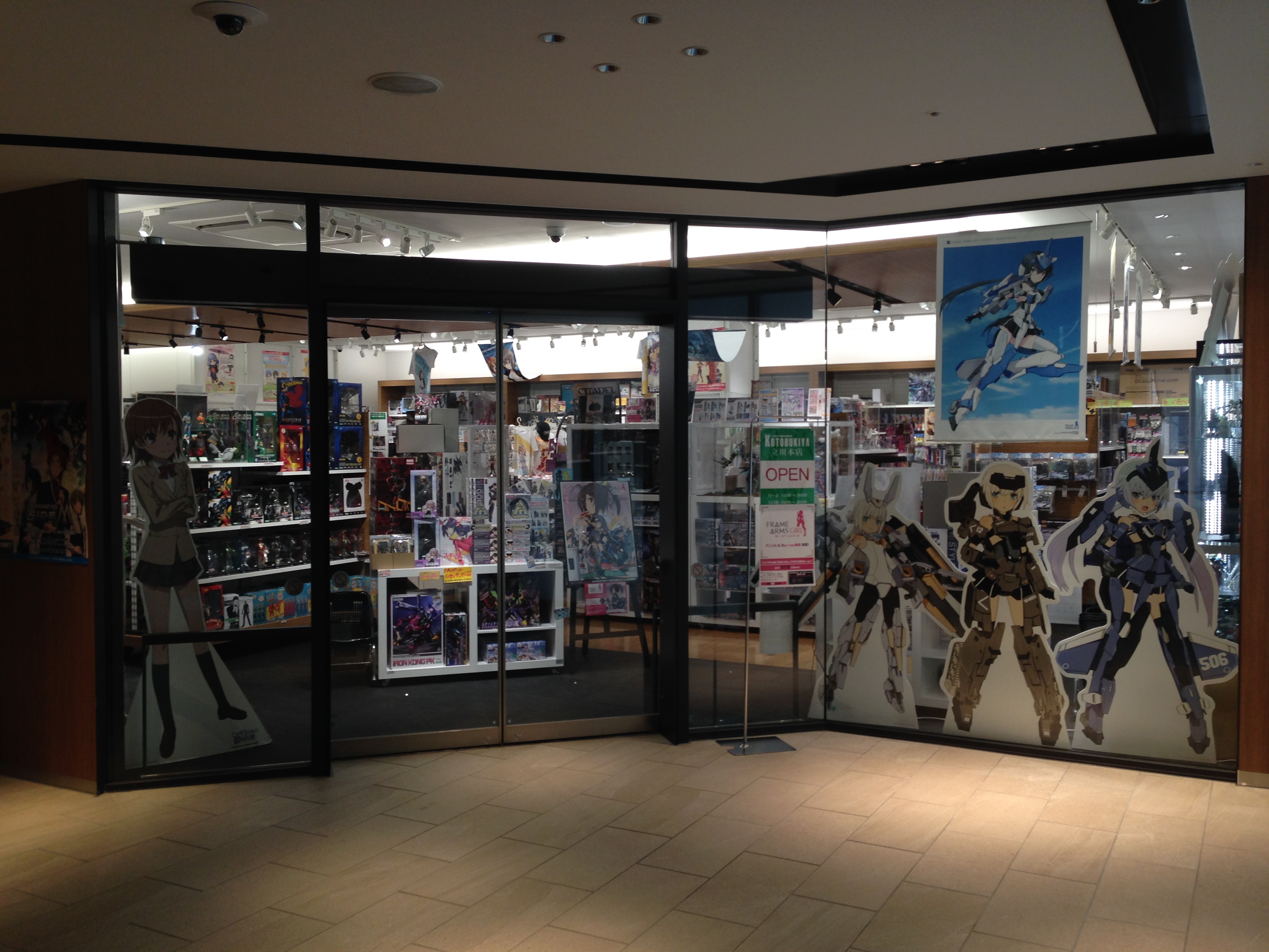 コトブキヤ様本社です。アニメ内ではあくまで町の風景としての登場の模様(´∀`)フレームアームズ・ガールグッズは2F店舗、ウドラグッズは1F店舗に展開されてました。2F店舗と1F店舗は直接繋がってませんのでご注意を。