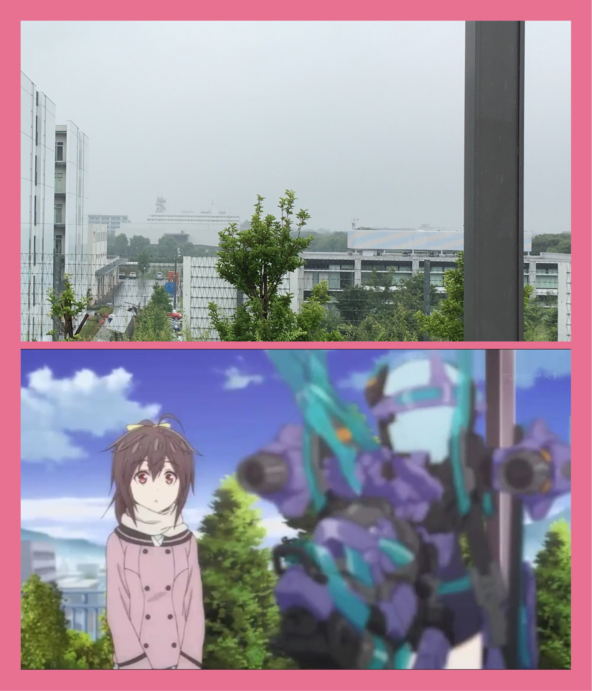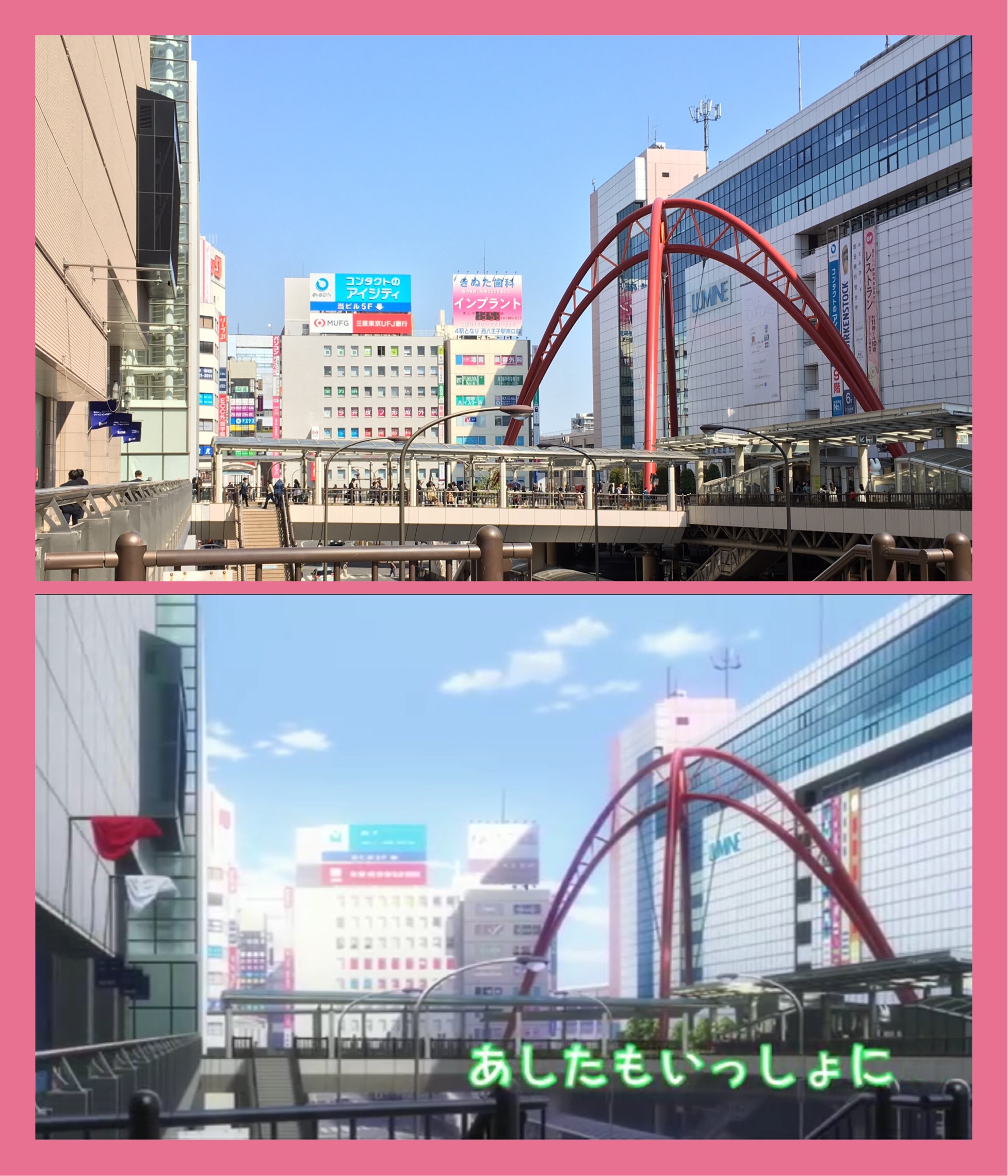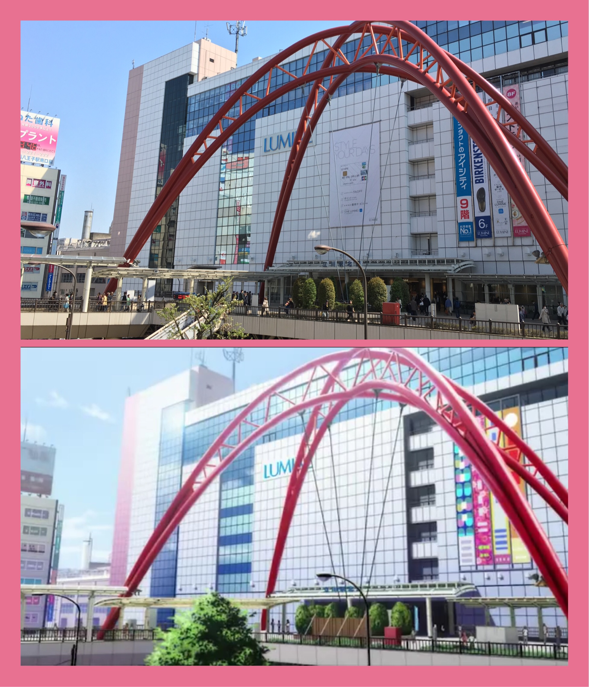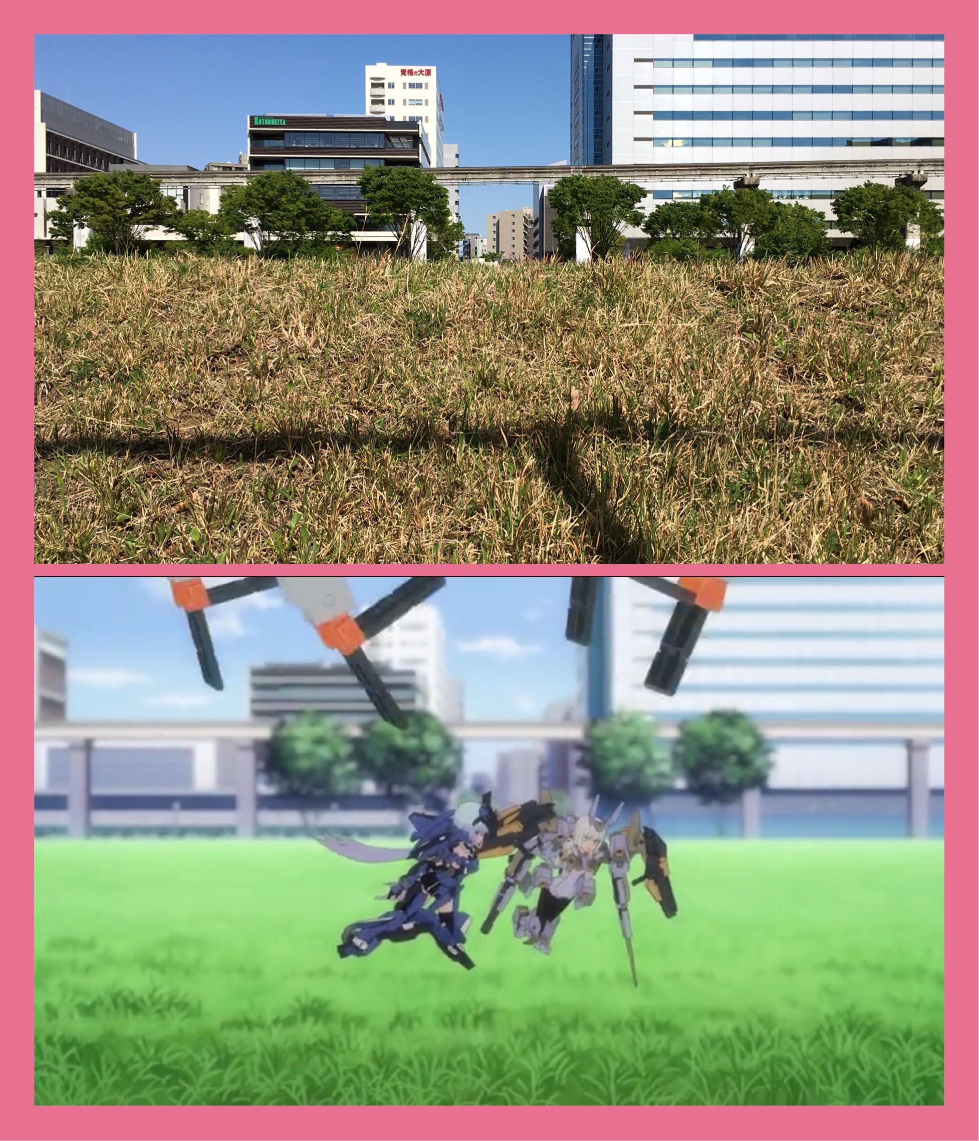 最初の最初に登場するのが商業地区として名高い立川市の立川駅北側ペデストリアンデッキ&巨大なアーチのモニュメント。今作の著作元であるコトブキヤ様本社は立川駅の近くに在ります。