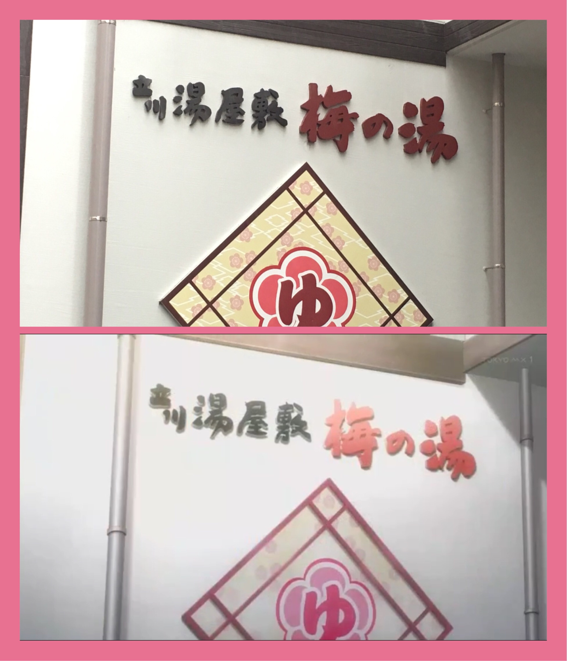 休憩室ののれんはアニメ通り1Fですが、どうやら浴室描写は2Fだったようです。そしてなんと梅の湯様から神イベントのお知らせが!(関連記事: