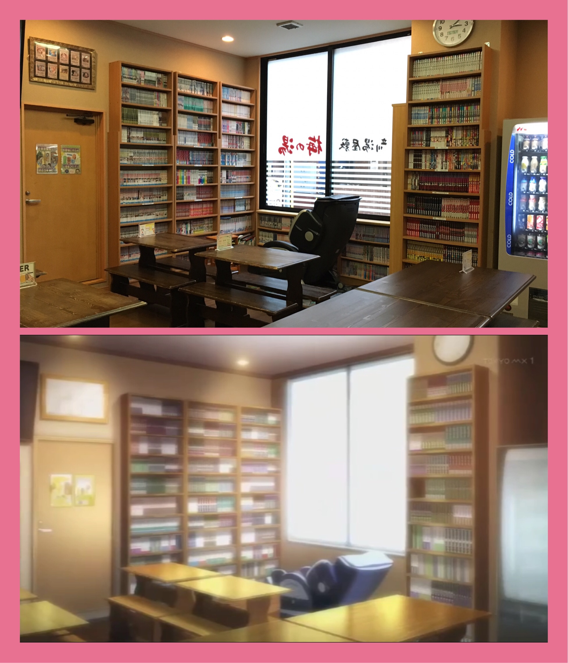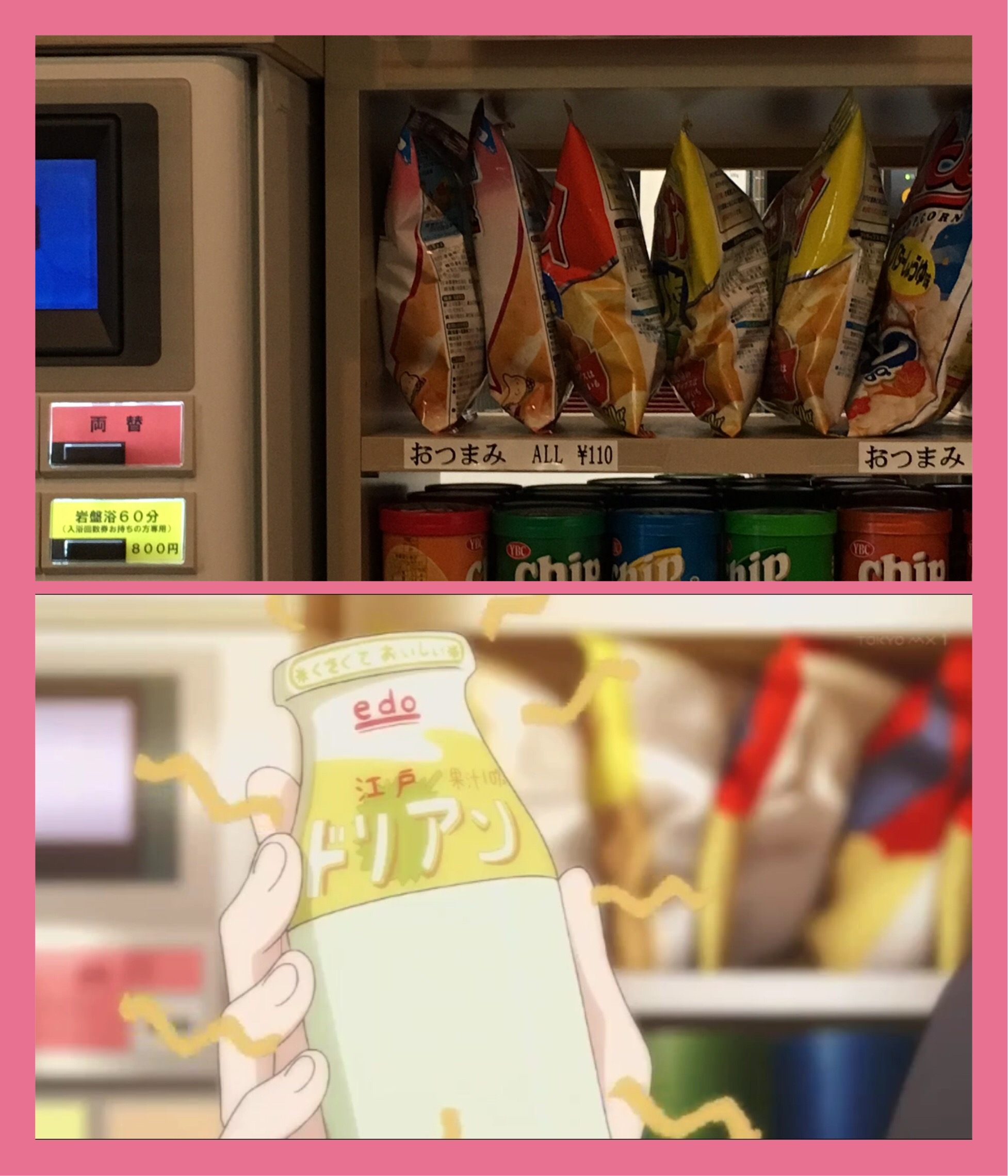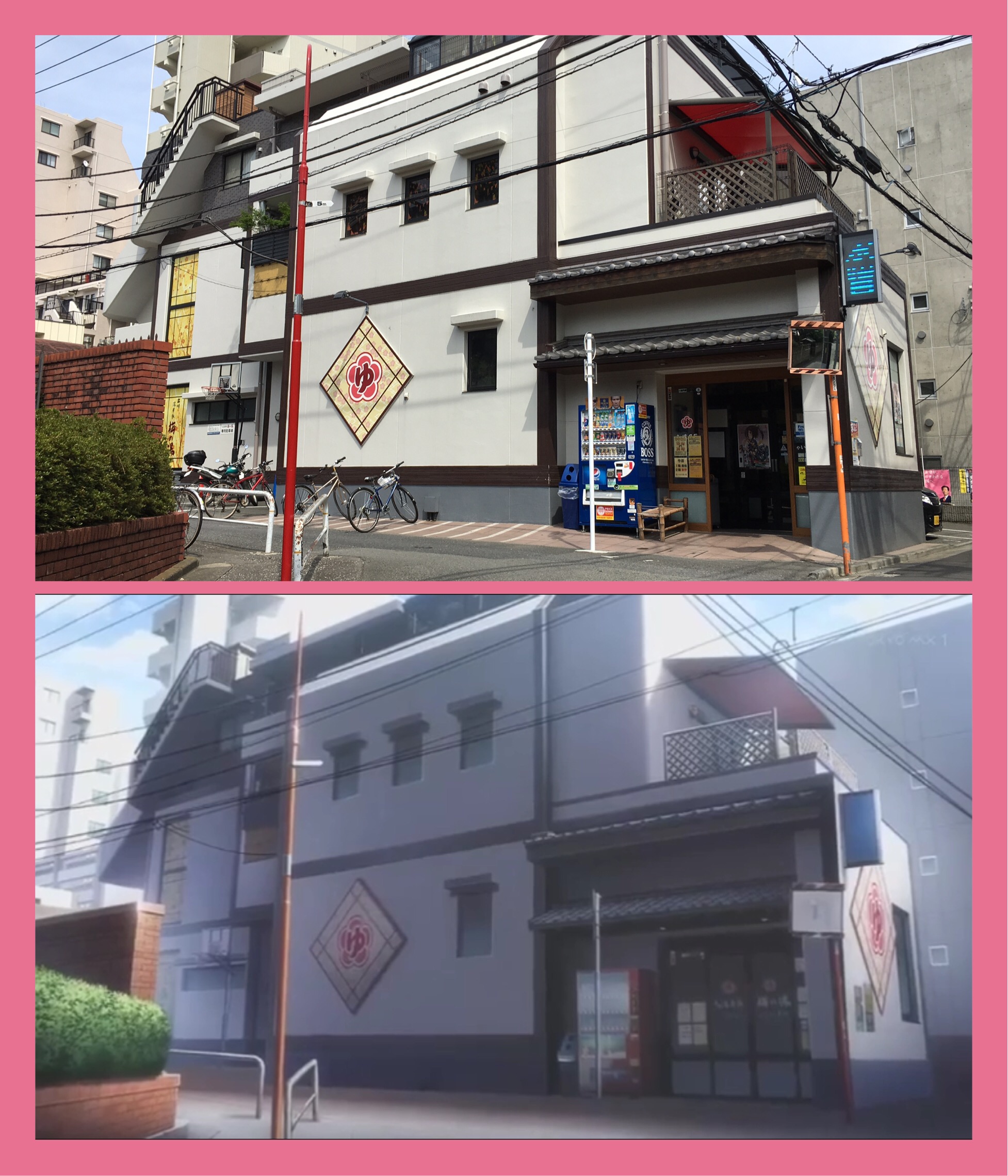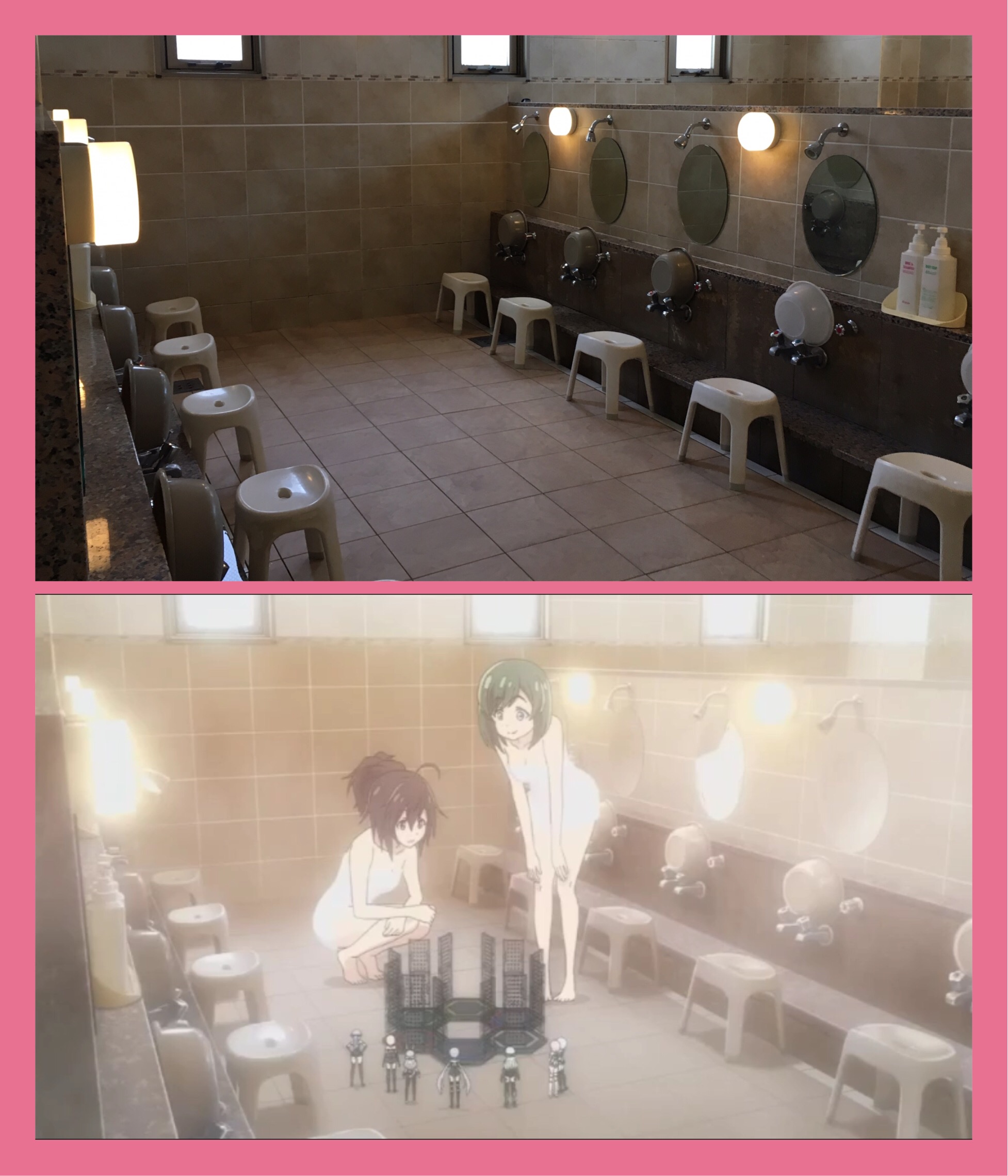 男女1F2Fを週替わりで営業されている様です。今週はアニメ通りの女性1F。つまり男である私はあおちゃん達と同じ浴槽に入ることは出来ませんでした(´∀`=)残念…またいつか。しかし、休憩室のシーンののれんはアニメ通りなのでバッチリでした。