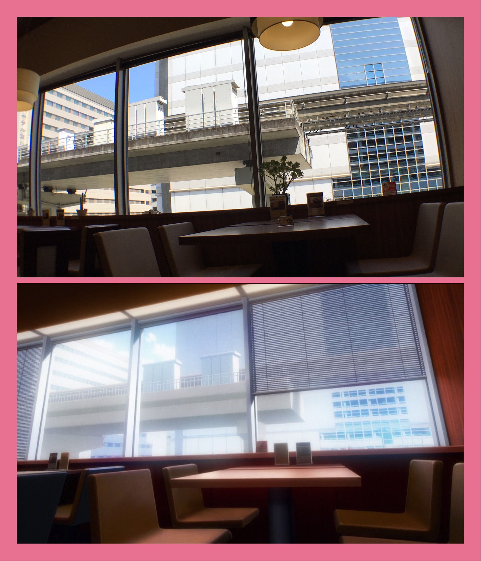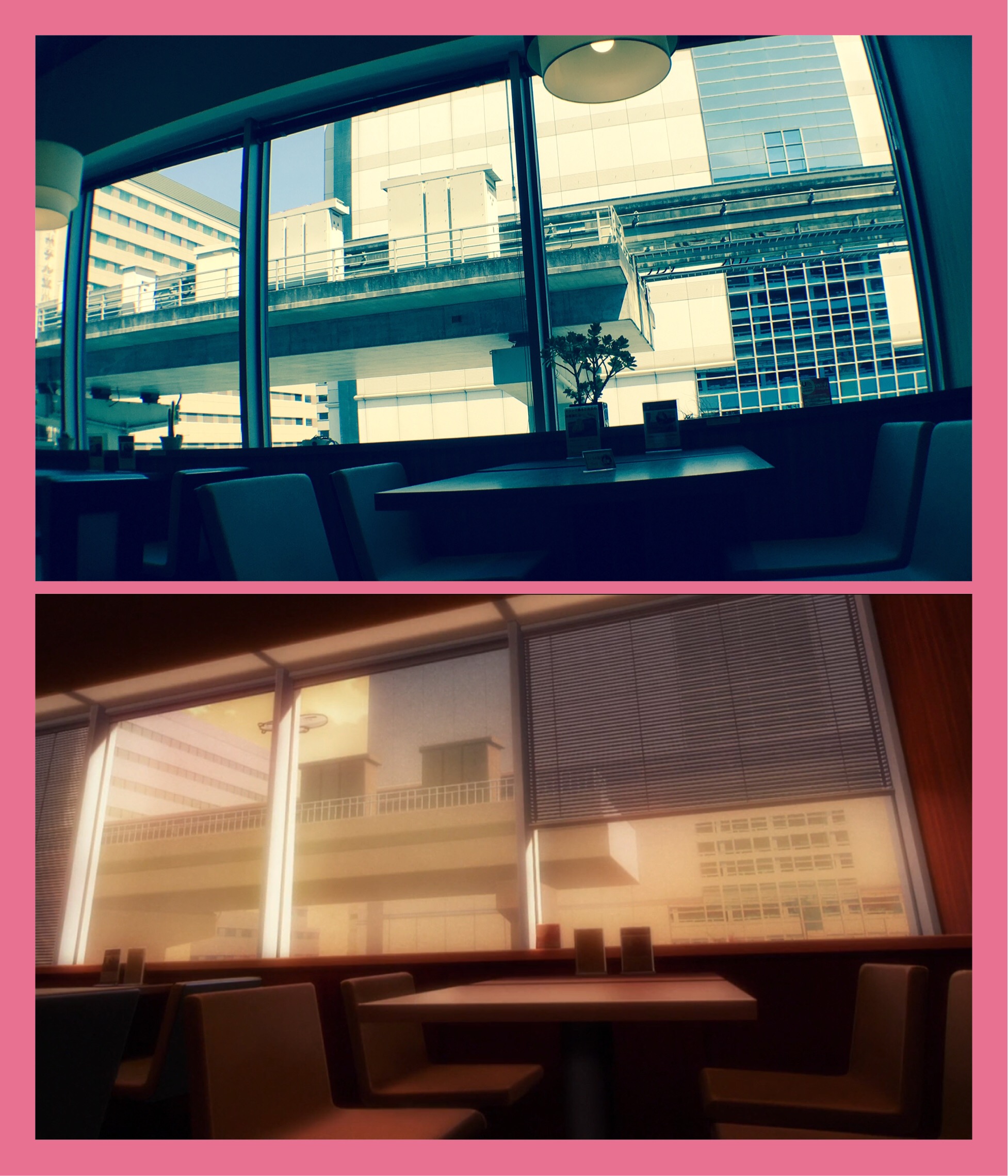 朝のシーンでサンサンロードのシネマ・ツー様を望む。コトブキヤ様本社周りのカットはやはり多いですね。
