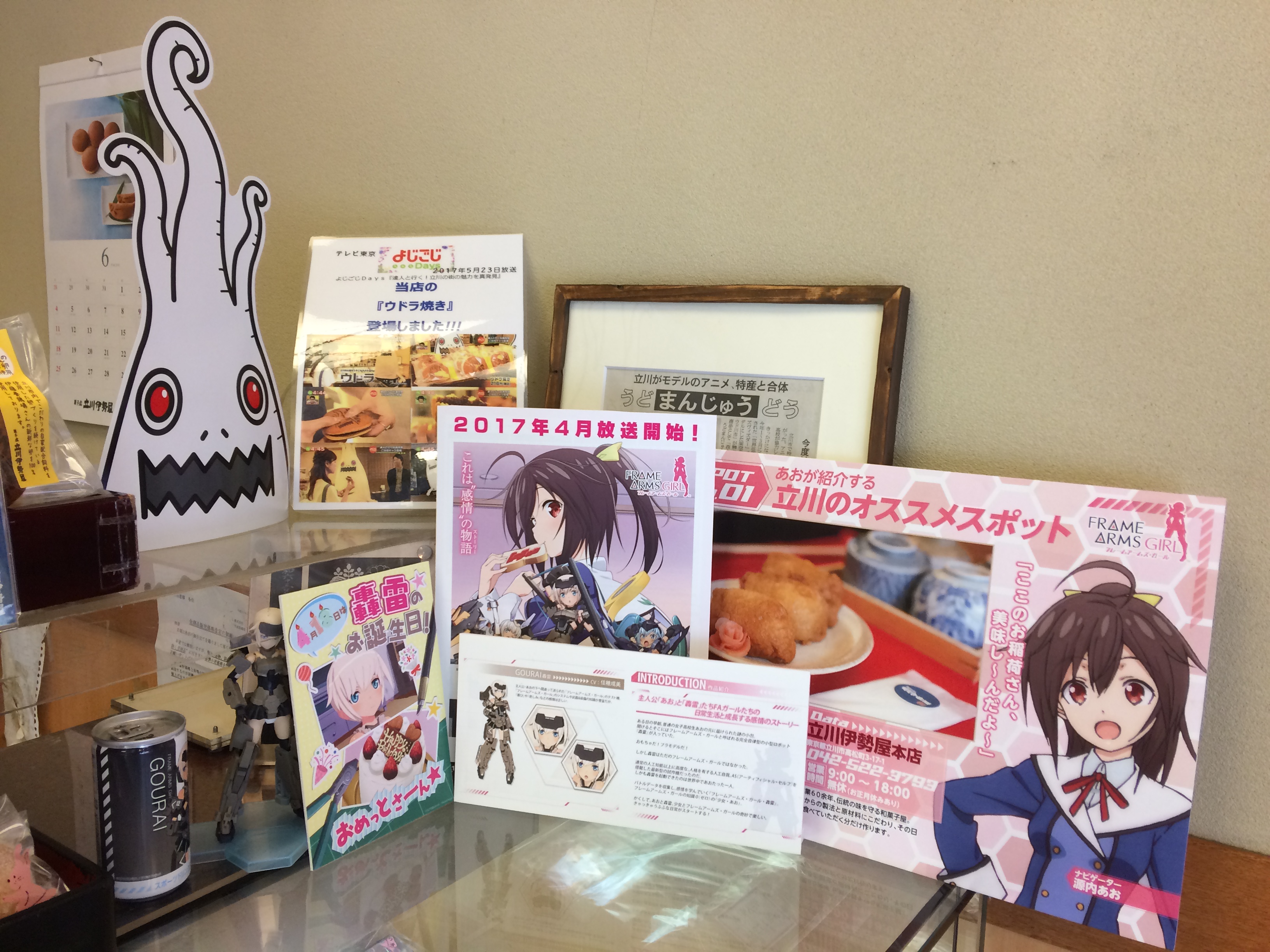 立川伊勢屋様。多種アニメ関連展示やコラボ商品もあります。