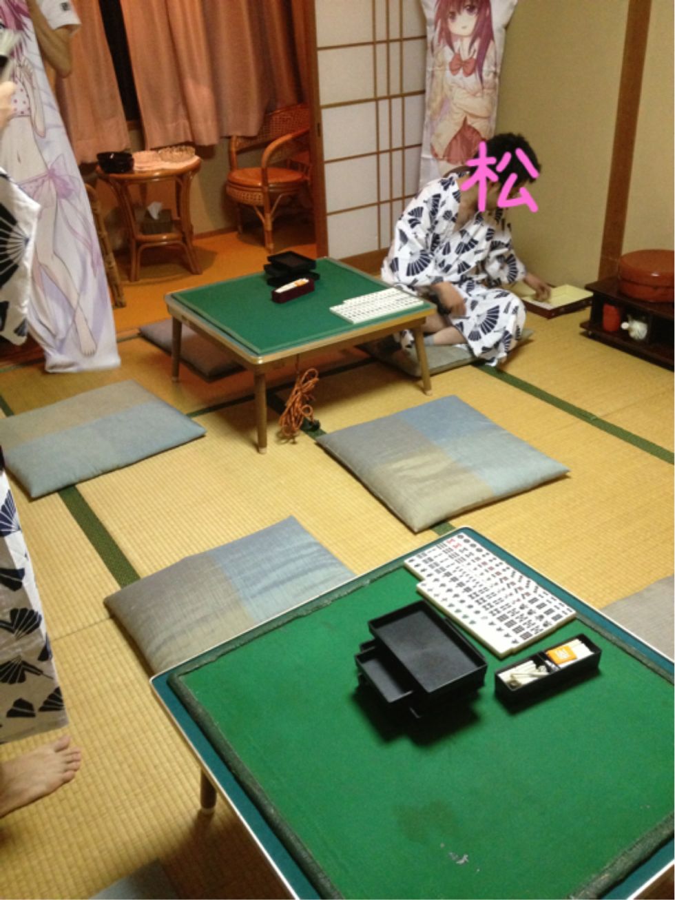 そう、静乃湯をあがった私を待っていたのは麻雀でして(´∀`=)なんでも、さこやさんが昔使っていたものをわざわざ用意してくれたのだとか(^^)