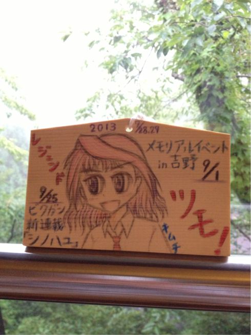 さこやさんにお邪魔させてもらっております。前々から泊まりたいとは思っておりましたが、これが3度目の吉野。突発的ですが夢が叶い幸せです!相談に乗ってくれた観光協会の方々、さこやさん、そして咲-Saki-を(異常にw)愛する7人の同志、本当にありがとうございます(^^)/