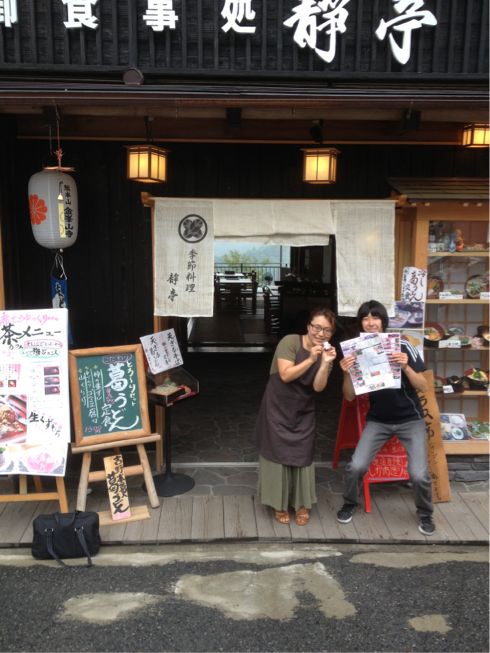 静亭の女将さんにご挨拶。私はまだ食べてないのですが新メニューのオムライスに「咲」と書いてくれるサービスを始めたのだとか(´∀`=)今回は時間が無くて残念ですが、また楽しみが増えました(^^)女将さん、お料理中にわざわざ出て来てくれて(お茶まで出して頂き)すみません&ありがとうございました!
