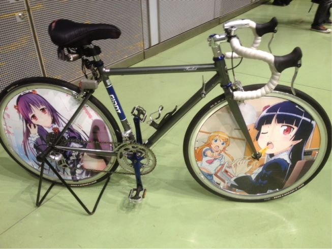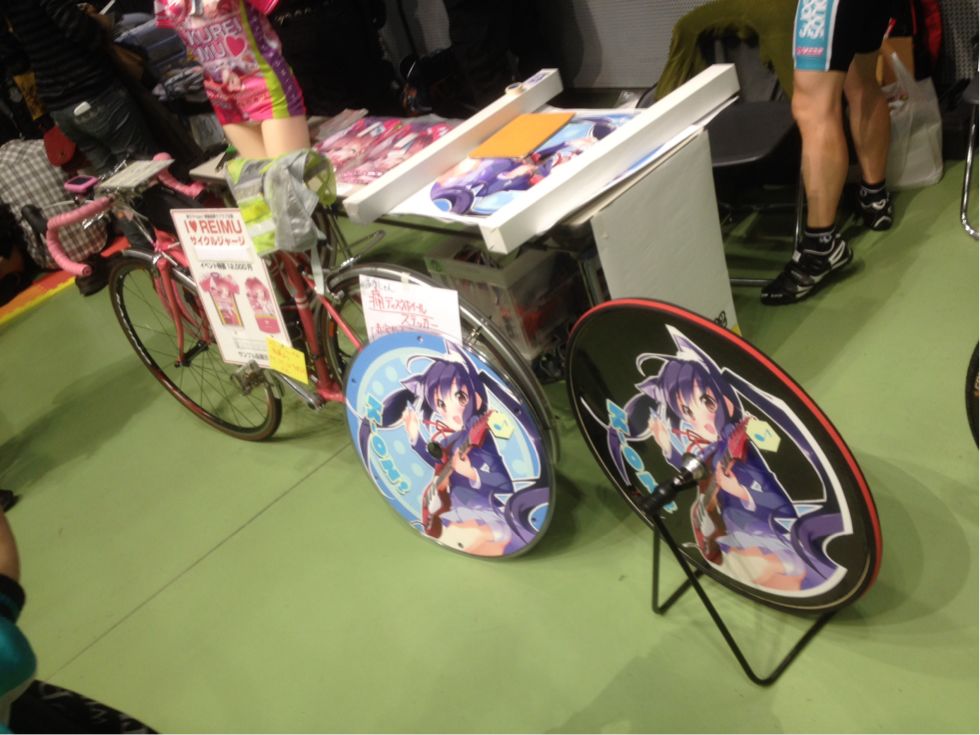 こちらでは痛チャリのホイールカバーを間近で見させて頂きました(^^)良い物になるとカーボン製,そしてステッカーが貼りやすい真っ平らな作りとなっていて、10万円程するのだとか(^^;;