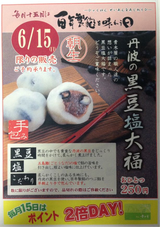 因みに6月15日一日限定販売の大福もあるそうなので、興味のある方は電話予約必須です!(運が良ければ予約無しで買えるかも…?)