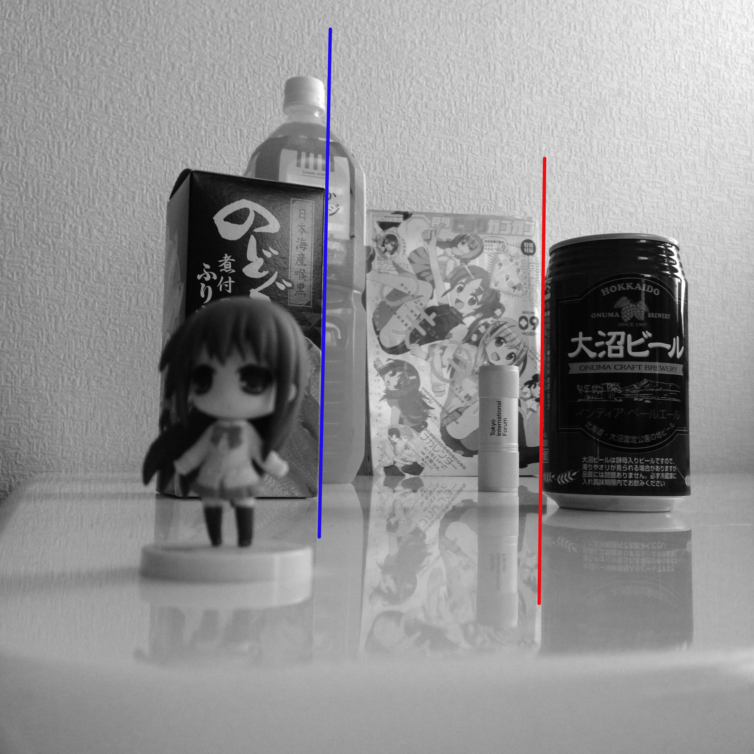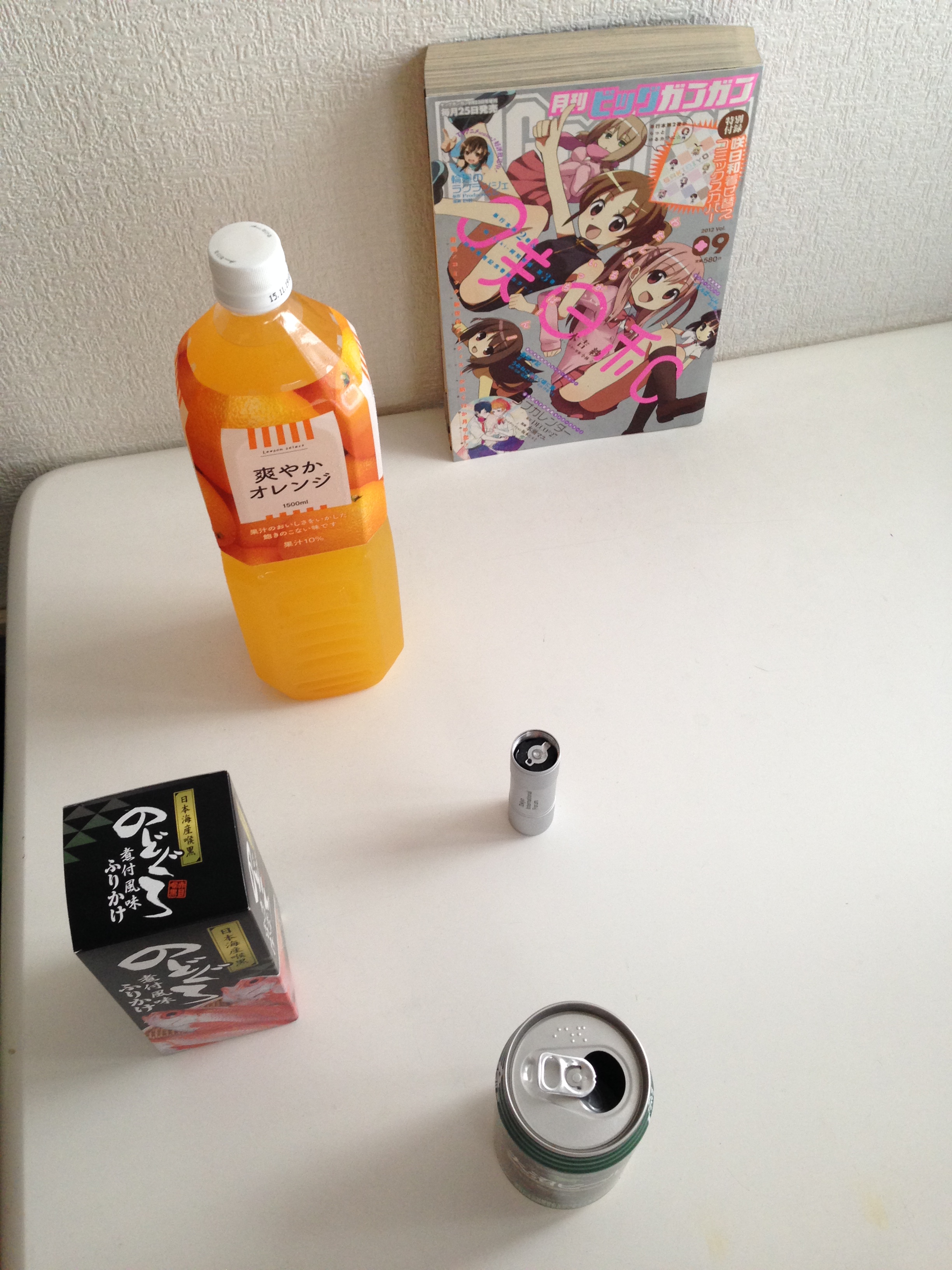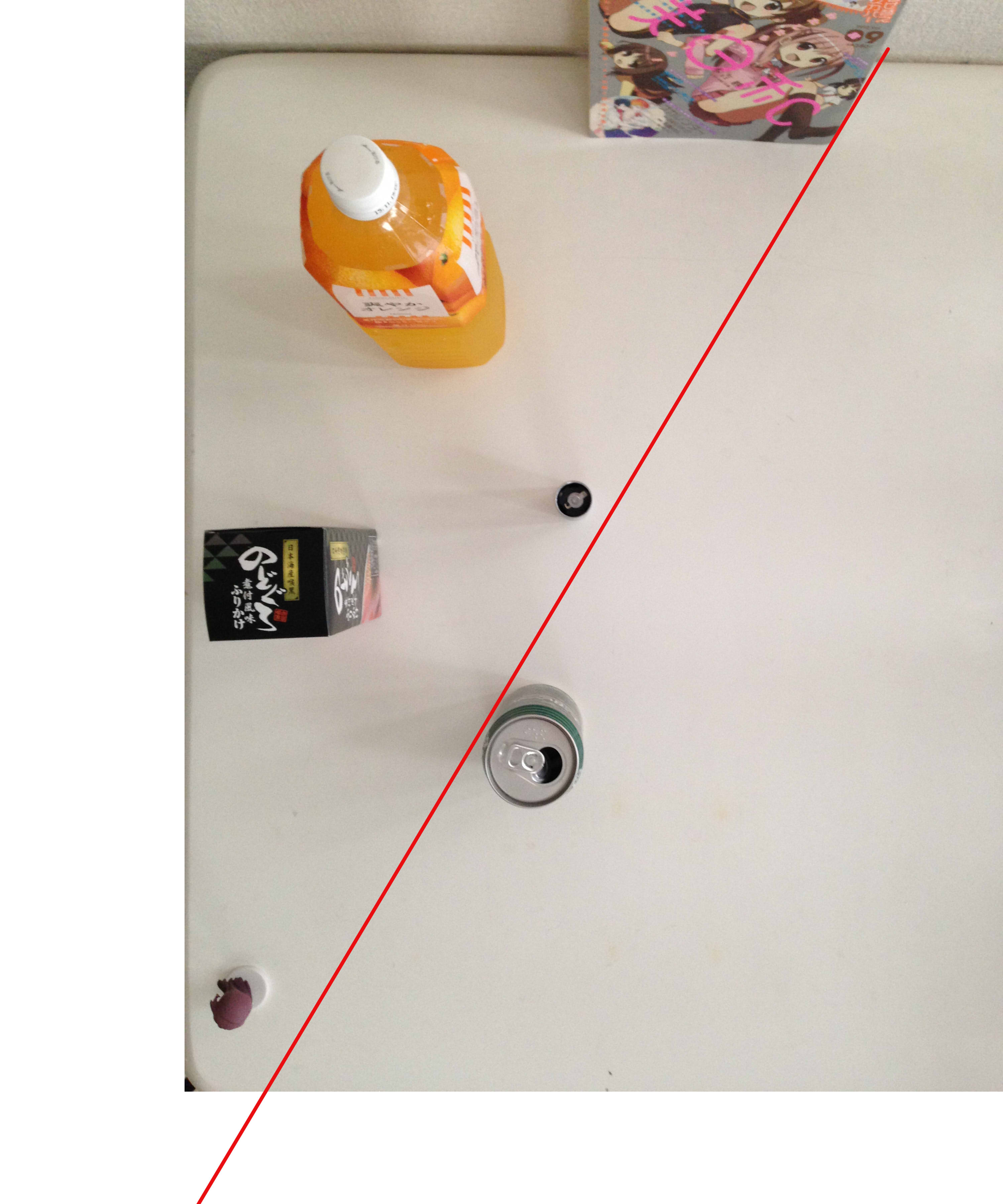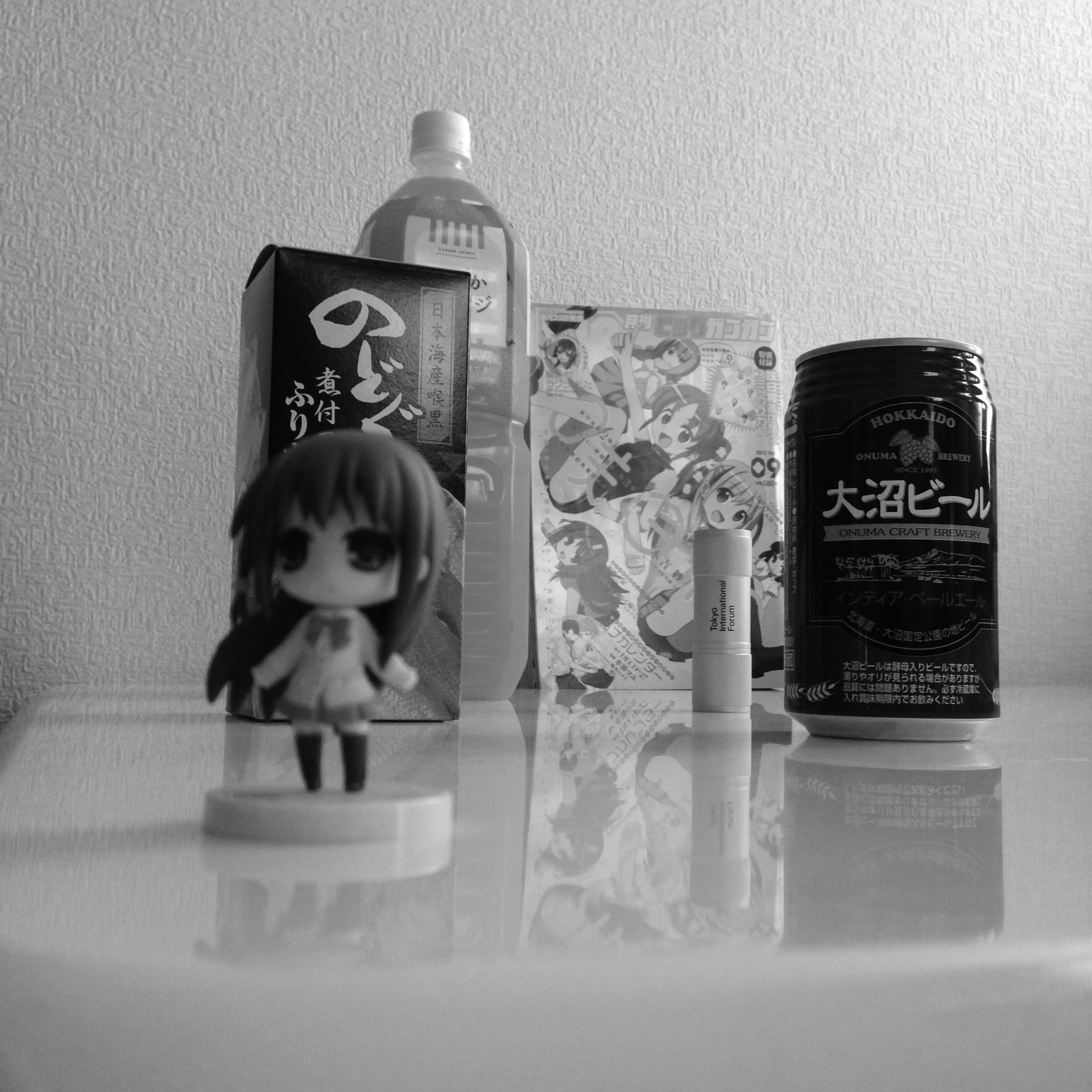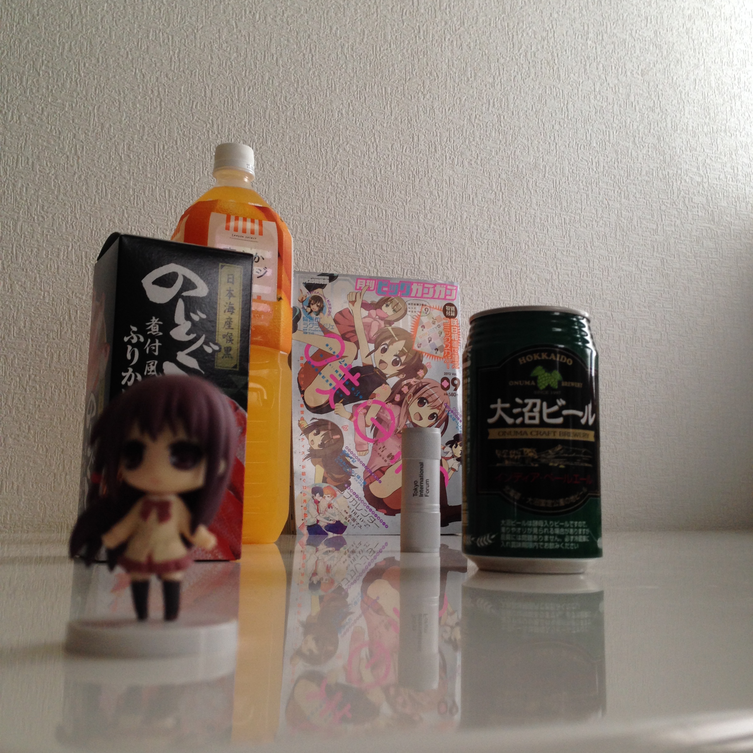 右は大沼ビール1/2個分、左はのどぐろふりかけ1個分、上は爽やかオレンジキャップ3個分、下は大沼ビール1個分…といった具合にしっかり全体構図を意識してからシャッターをば。