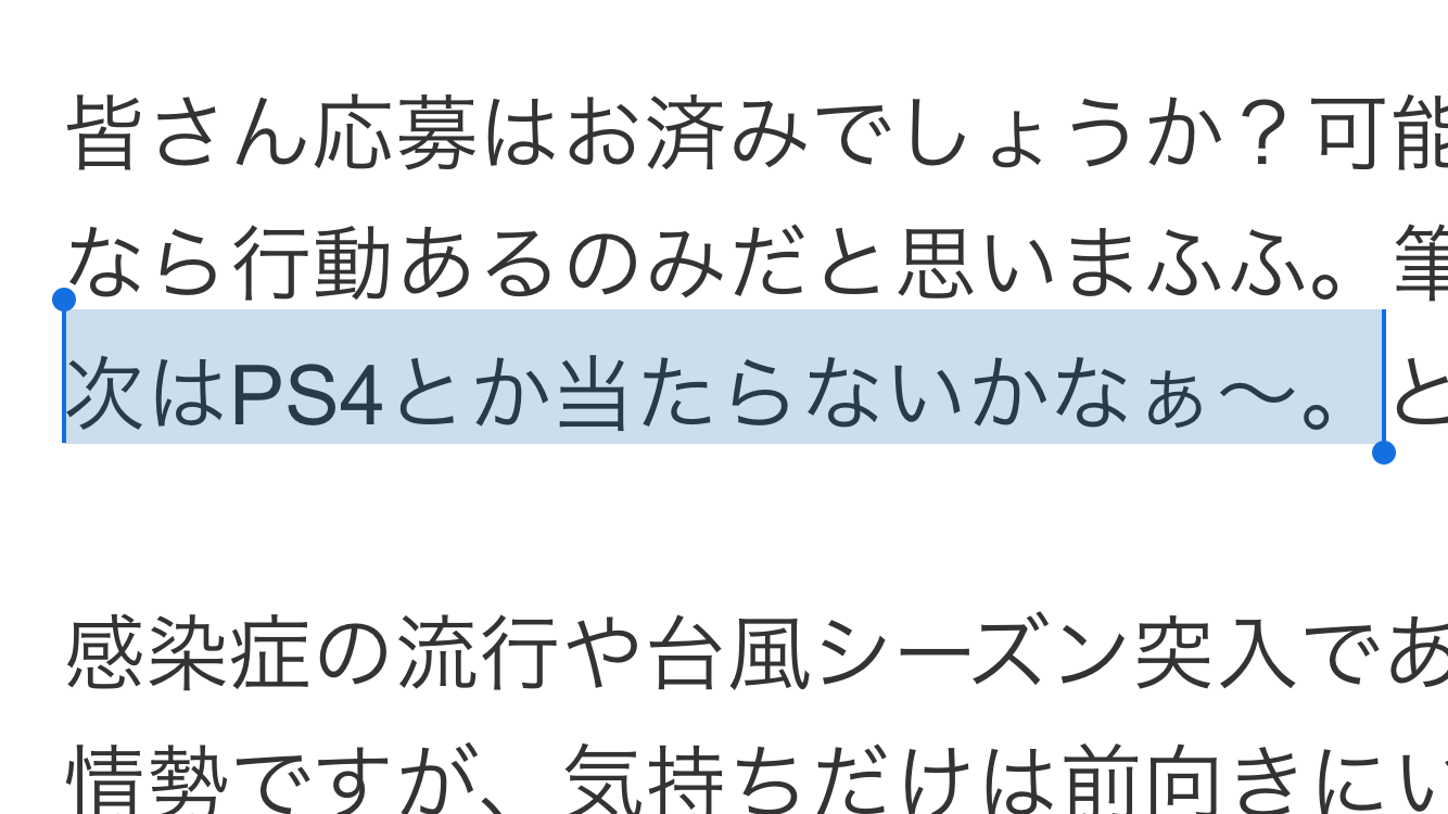 !???????いや、いきなり届いたので本当に驚きですし、、感謝ですし、、感謝です、、、、ありがてぇ。TV用のプレステは友達の家で3に触れさせてもらって以来(グラセフだったかなぁ?←うろ覚え)ですし、TVゲーム自体最近は殆どやらない(最後にやったのが昨年10月にSwitchのスマブラ)ので、折角の機会と捉えて遊んでみようかと思いまする。勿論、懸賞で頂いたモニターを使って!!ありがてぇ、、、ありがてぇぇぇ〜〜〜〜