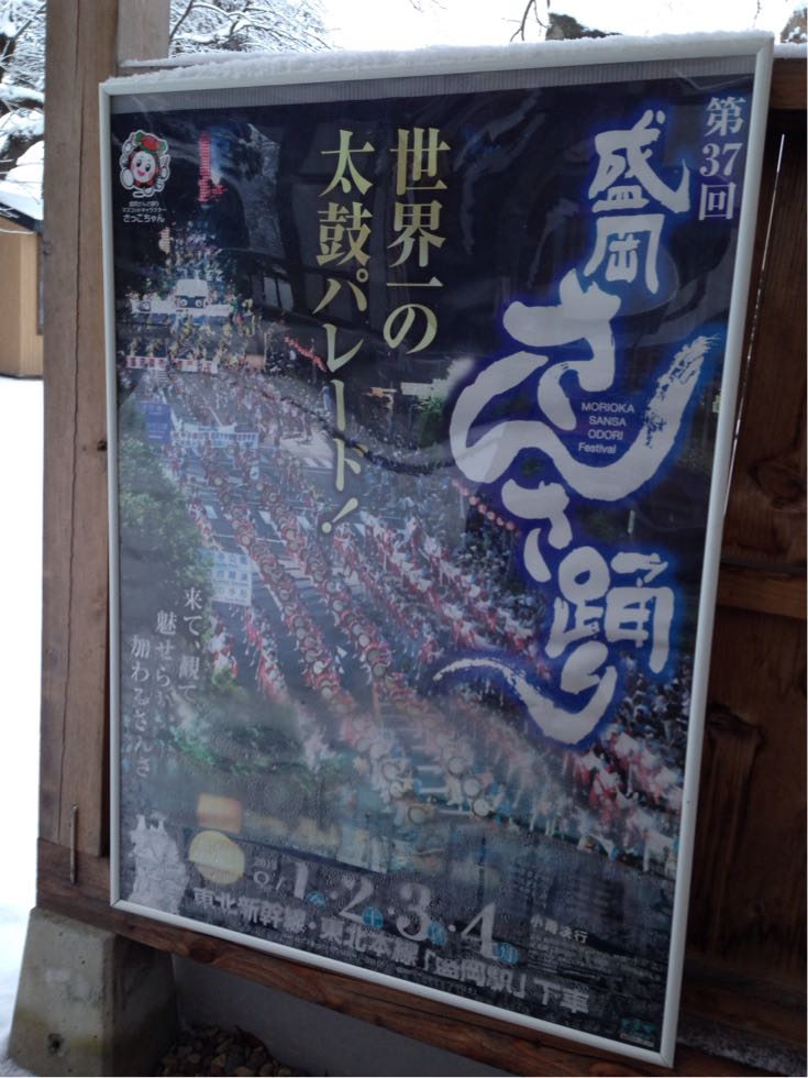 早朝風吹く中、盛岡駅に到着。水気の少ない雪が数センチ積もっておりました。